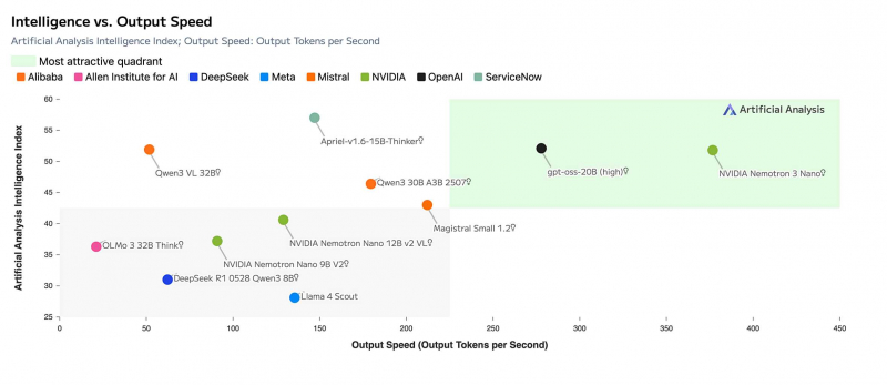 독립 AI 벤치마킹 기관인 Artificial Analysis는 Nemotron 3 나노를 동급 모델 가운데 가장 개방적이면서 효율적인 모델로 평가했으며, 정확도 역시 상위권으로 분류했다.