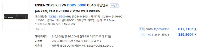 RAM : ESSENCORE KLEVV DDR5-5600 CL46 16GB 파인인포