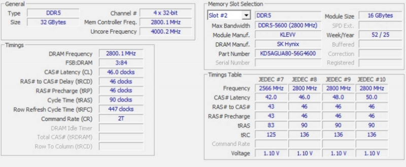 KLEVV DDR5-5600 CL46 16GB는 방향성이 분명했다. 화려한 튜닝 요소나 과도한 성능 경쟁보다는, 순정 상태에서의 안정성과 호환성을 중심으로 설계된 면모가 돋보였다. JEDEC 표준 규격을 준수해 별도의 설정 없이도 다양한 플랫폼에서 즉시 인식되며, 인텔 12세대부터 14세대, AMD 라이젠 7000 및 9000 시리즈까지 폭넓은 시스템에서 무난하게 사용할 수 있다.