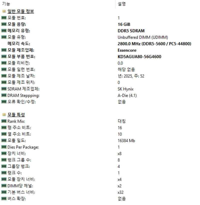 ◆ ESSENCORE KLEVV DDR5-5600 CL46 파인인포 (16GB)