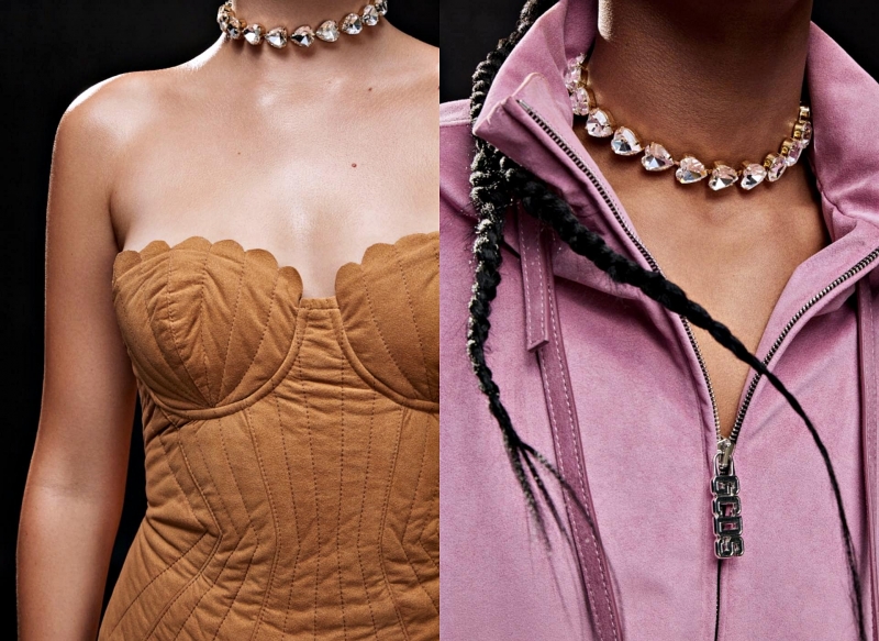 브라렛 및 바디수트 등을 활용해 넥라인을 강조한 미니 시셸 드레스와 오버사이즈룩을 강조한 남성복 컬렉션은 톤온톤 (ton-sur-ton) 스타일의 봄버 재킷, 그린 컬러 카우 프린트 룩 트라우저, 트렌치 코트 및 점프수트로 구성했다.