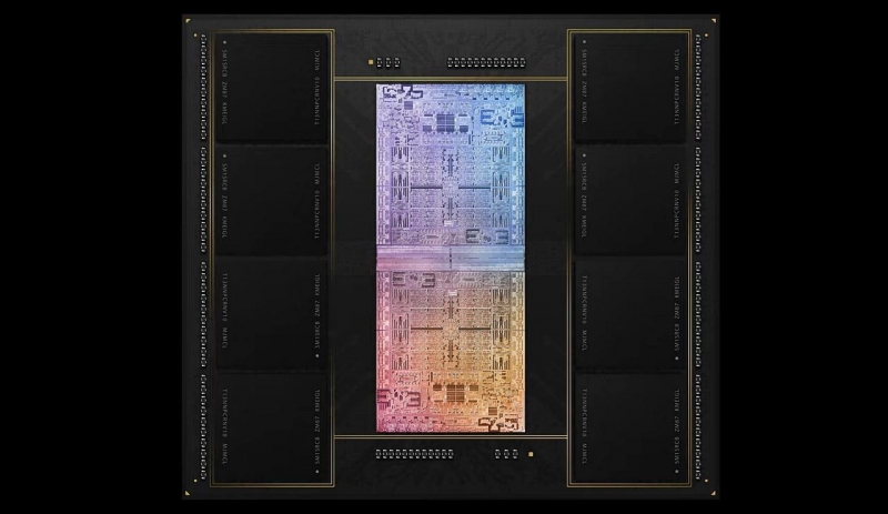 M1 울트라는 단순히 M1 맥스 2개를 붙인 것이 아니다. 단순히 붙이면 프로세서를 2개로 인식해 당연히 대역폭이나 열효율 면에서 손해를 본다. 애플은 울트라퓨전이라는 이름의 새로운 아키텍처를 설계해 2개를 붙인 형태지만 사실상 1개의 프로세서로 패키징해 무려 초당 2.5TB의 엄청난 대역폭을 구현했다.