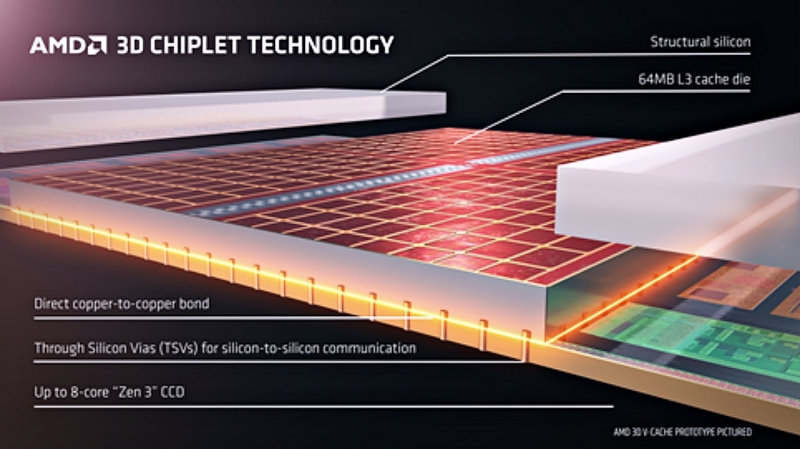 AMD 라이젠 7 5800X3D의 경우 3D V캐시를 적용한 L3 캐시 메모리는 96MB까지 증가했다. 여기에 L2 캐시를 포함하면 총 메모리 용량만 합산 100MB에 달한다. 덕분에 빈번하게 액세스 하는 데이터를 메모리에 담을 수 있게 돼 병목이 생기는 현상이 대폭 줄었다. 결과적으로 게임에서 높은 프레임을 유지하는데 효과적이다.