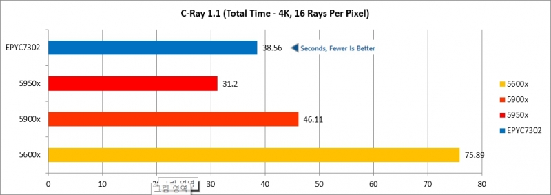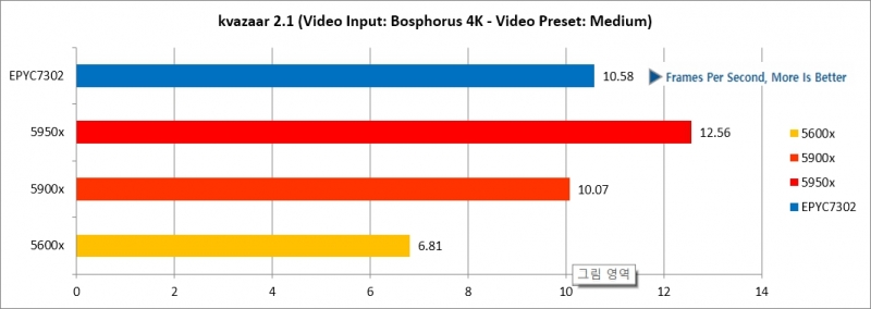 멀티코어를 많이 사용하는 부분에서는 아무래도 라이젠 5 5600X가 가장 낮은 성능을 보였으나 일부 테스트에서는 EPYC 7302를 능가하는 수준의 성능을 보여주기도 했기 때문에 간단한 서버용으로는 라이젠 5 5600X를 사용해도 무방할 것으로 보이며, 다소 고성능을 요구하는 경우 라이젠 9 5900X나 5950X도 EPYC 7302 수준의 CPU는 충분히 대체할 수 있을 것으로 보인다.