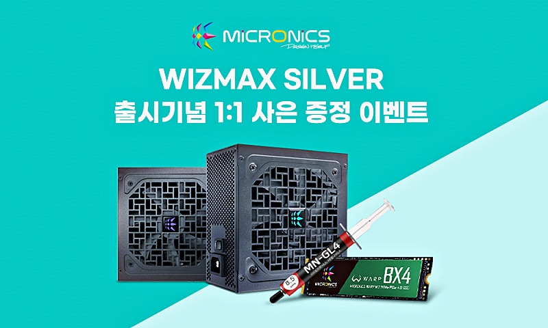 한편, 마이크로닉스는 위즈맥스 실버 파워서플라이 출시를 기념, 위즈맥스 시리즈 파워서플라이 구매자를 대상으로 사은품을 증정하는 출시 기념 이벤트를 진행한다. 먼저 제품을 구매한 쇼핑몰에 포토후기를 작성하면 MN-GL4 써멀구리스 스크래퍼 세트를 증정한다. 이후 포토후기 이벤트에 참여한 소비자 중 5명을 추첨해 워프 BX4 M.2 NVMe SSD 1TB를 선물로 증정한다.
