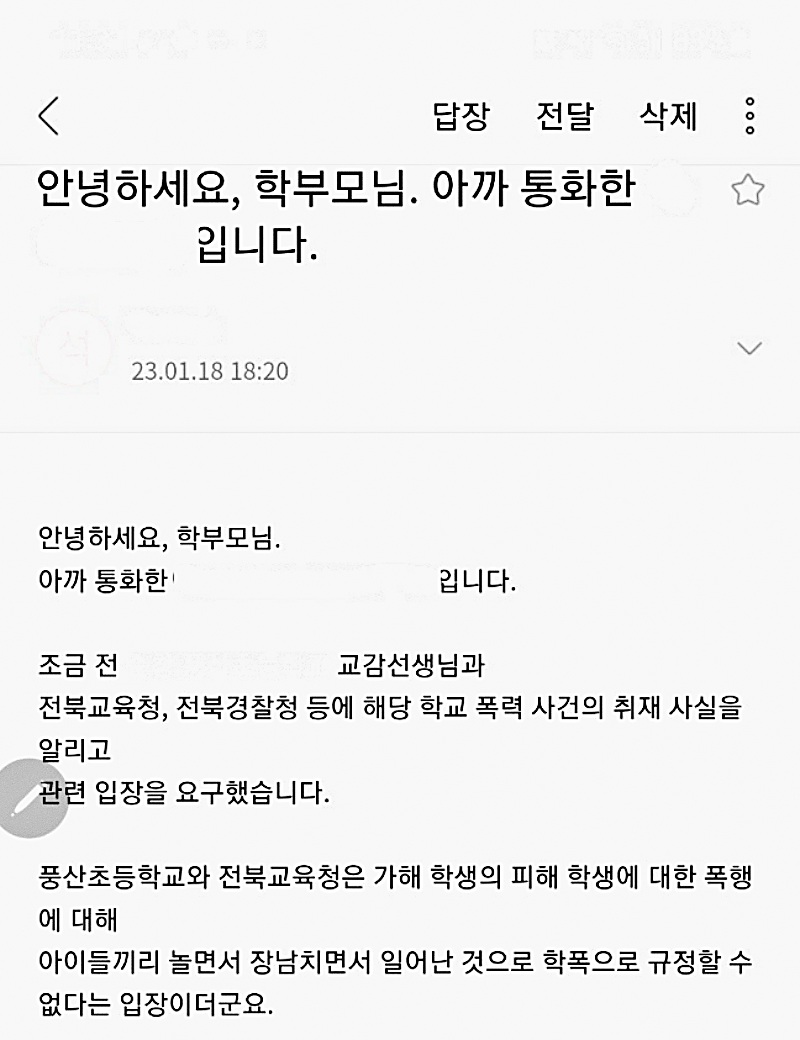 △ 문제가 발생한 초등학교와 전북교육청이 학교폭력을 단순 장난으로 마무리하려는 정황