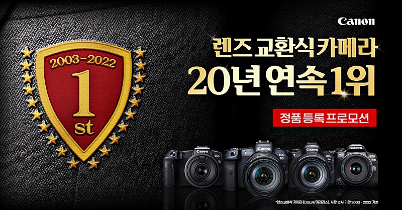 캐논코리아는 정품등록 프로모션을 기획했다. 대상 기종은 미러리스 카메라 6종(▲EOS R3 ▲EOS R5 ▲EOS R6 Mark II ▲EOS R ▲EOS RP ▲EOS R10)과 주요 DSLR 4종(▲EOS 5D Mark IV ▲EOS 6D Mark II ▲EOS 90D ▲EOS 850D) 등 총 10종이다.