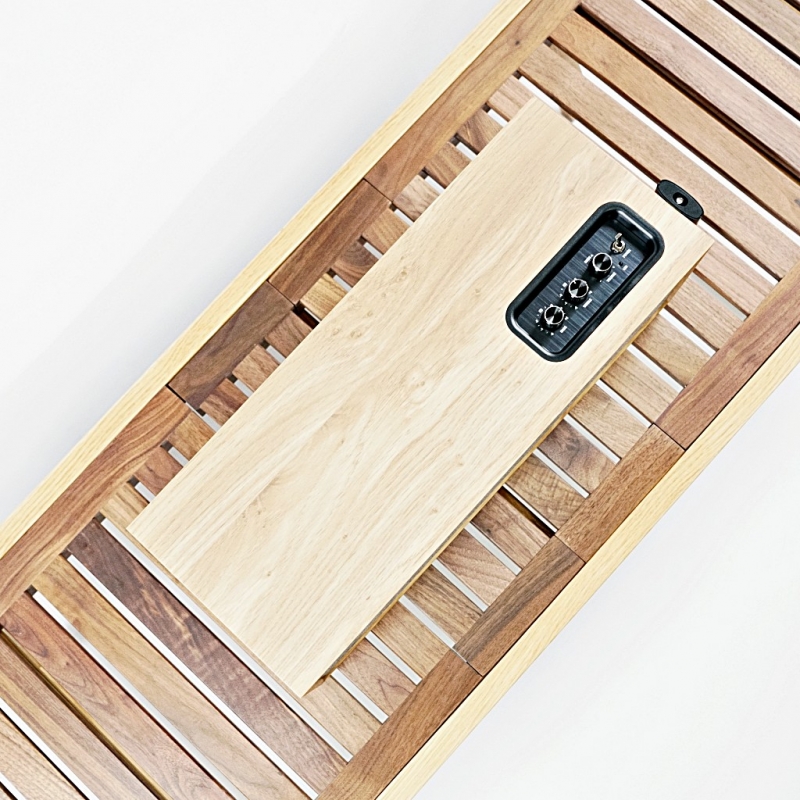 박스 형태 제품 중에서도 탑 3안에 들어갈 정도로 완성도가 높다. MDF를 사용했지만 정교하게 다듬었다. 각진 모서리가 무척 세련됐다. 패브릭 탈착 그릴이 장착되는 면은 안쪽을 사선 형태로 가공했다. 선과 면에 각을 적절히 주어 디자인을 완성했다. 그리 어렵지 않은 가공이지만 적절하게 더해지니 결과는 무척 훌륭하다.
