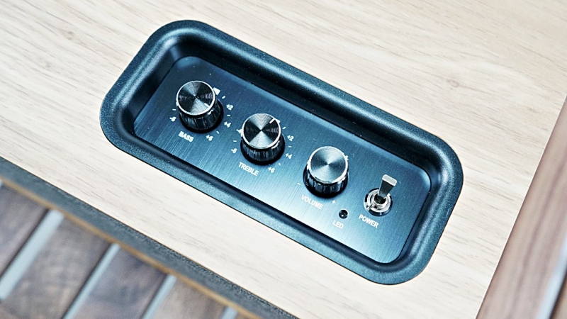 조절 버튼까지 신경 썼다. 상단 우측에 음각 형태로 배치하면서 전체 디자인 일체감을 유지했다. 기존에 캔스톤이 출시한 스피커는 하나 같이 조절 버튼이 튀어나오는 형태이거나 후면에 위치한 것이 공통된 모습이다. 그러한 패턴을 과감히 탈피 생소한 방식이다. 심지어 사용한 노브도 막 돌아가는 것이 아닌 꽤 무게감 있다.
