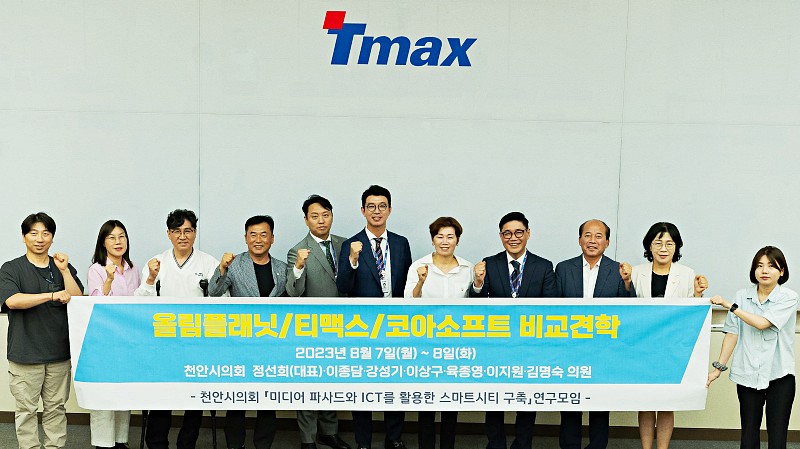 지난 7일 성남시 분당구에 위치한 티맥스타워에 천안시의회 소속 의원의 방문이 있었다. 이자리는 티맥스 그룹 슈퍼앱 기반 메타버스 사업 설명을 듣고 그룹사 연구소 탐방하는 순서로 진행됐다.