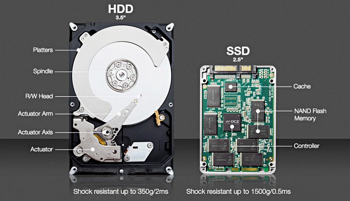 우선 SSD가 무엇인지 모르는 사람도 있을 거 같으니 간단히 원리를 볼까. 메모리에는 크게 두 종류가 있어. 우리가 RAM으로 쓰는 디램(DRAM)은 속도가 매우 빠르지만 전원이 공급되는 동안만 데이터를 저장할 수 있어. 또 하나로 낸드(NAND) 플래시 메모리는 속도가 약간 느린 대신에 전원이 끊겨도 데이터를 그대로 저장하고 있지.