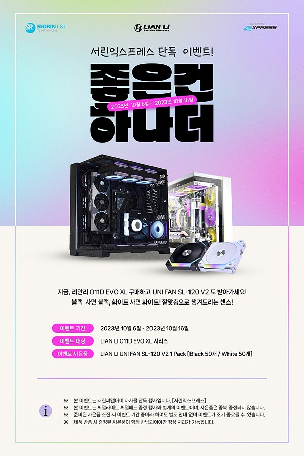 서린씨앤아이 '리안리 O11D 에보 XL 구매 시 유니팬 SL120 V2 증정'