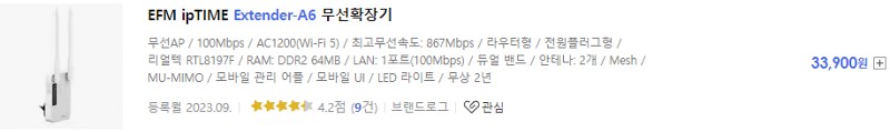 아이피타임은 소개하는 Extender-A6과 같이 확장기 만으로 메시 와이파이를 구성할 수 있게 했다. 같은 성능이라면 공유기를 하나 구매하는 것 대비 저렴한 것은 당연지사. 환경에 따라 다수 장비를 연결해야 한다면 가성비는 더욱 커진다.