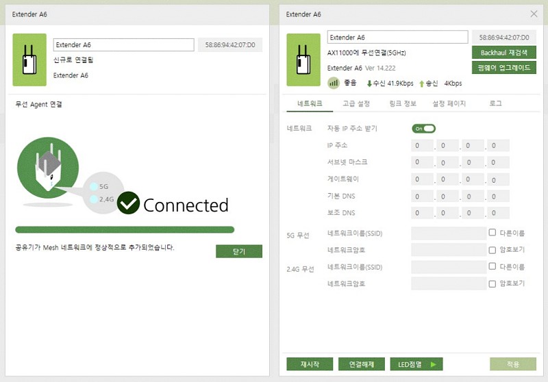 그렇다면 확장을 어떻게 하는 건가? 아이피타임은 이지 메시를 주력으로 밀고 있다. 일명 메시 와이파이 기술인데 각각의 장비가 고유의 아이피를 내세우는 것이 아닌 설치된 존에서는 하나의 SSID를 가지고 통신이 이뤄진다. 단, Extender-A6는 라이트 매시 제품인 만큼 단독 사용은 불가하며 반드시 메인이 되는 공유기에 접속해야만 확장할 수 있다.
