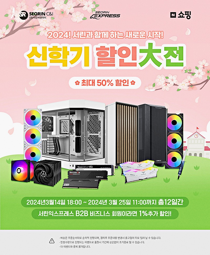 서린씨앤아이가 최대 50% 할인혜택 지급을 내세운 신학기 할인대전 행사를 오는 25일 11시 까지 진행한다. 유통 제품 중 인기 제품을 엄선 선별