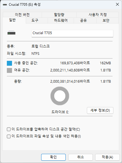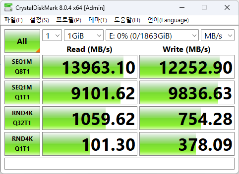 속도 : 읽기/쓰기(2TB기준) - 14,500/12,700 MB/s