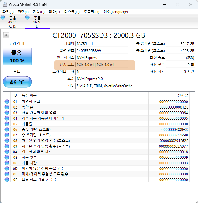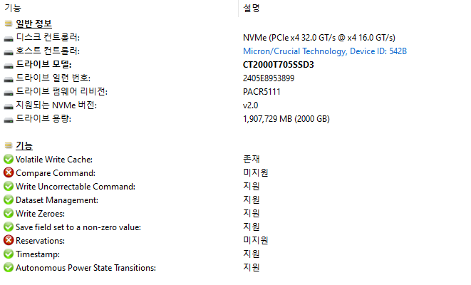 규격 : NVMe M.2 (2280) PCI-e 5.0x4 (128GT/s)