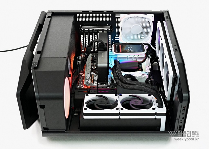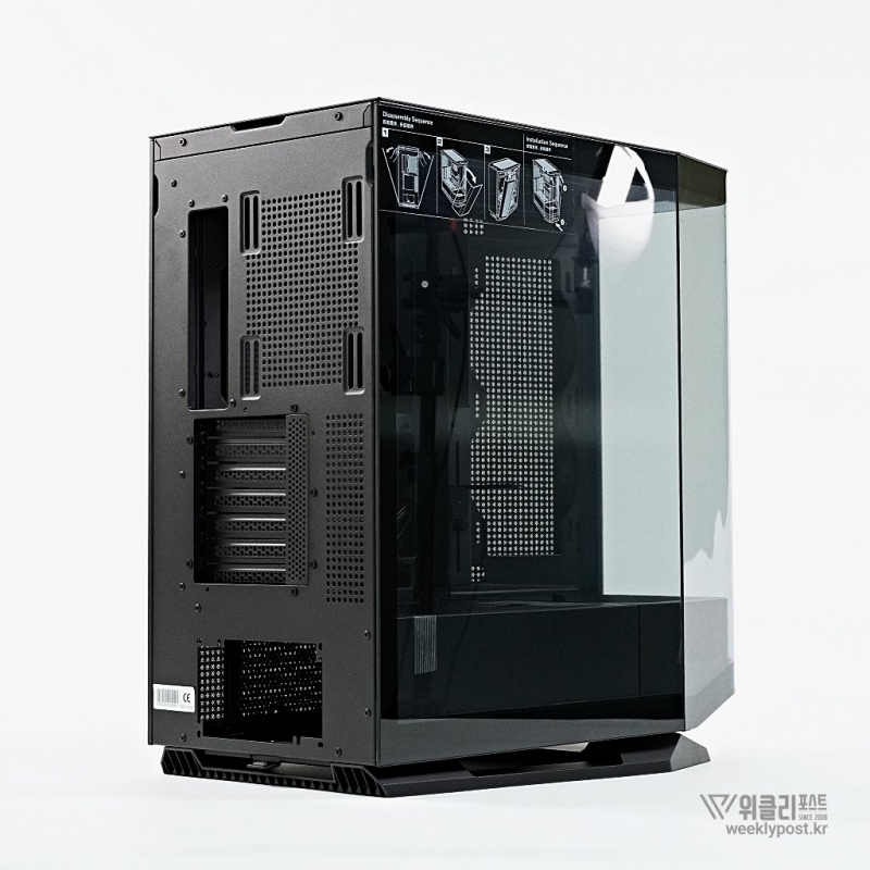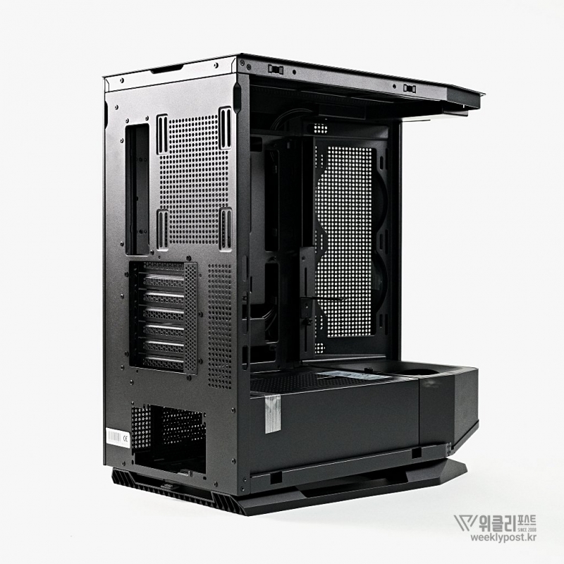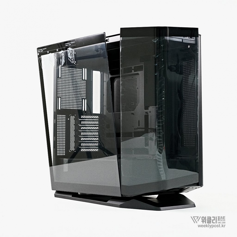 수직형 그래픽카드? 당연히 지원한다. 모듈형 확장 슬롯이 지원되어 메인보드 최대 폼팩터는 E-ATX, 그래픽카드 최대 길이는 420mm, 파워서플라이 최대 길이는 250mm까지 설치가 가능하다.