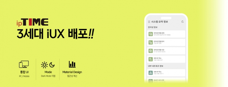 지난 24년간 공유기 시장을 선도해온 회사는 3세대 iUX를 통해 PC와 모바일 UI를 하나로 통합하여 플랫폼 간의 차이를 없앤 사용자 중심의 디자인을 강조했다. 직관적이고 이해하기 쉬운 사용자 환경을 목표로 하며, 눈의 피로를 줄여주는 다크 모드와 자주 사용하는 메뉴를 즐겨찾기 기능으로 우선 순위에 두는 등 기존 UI에서는 지원하지 않았던 기능도 추가했다.