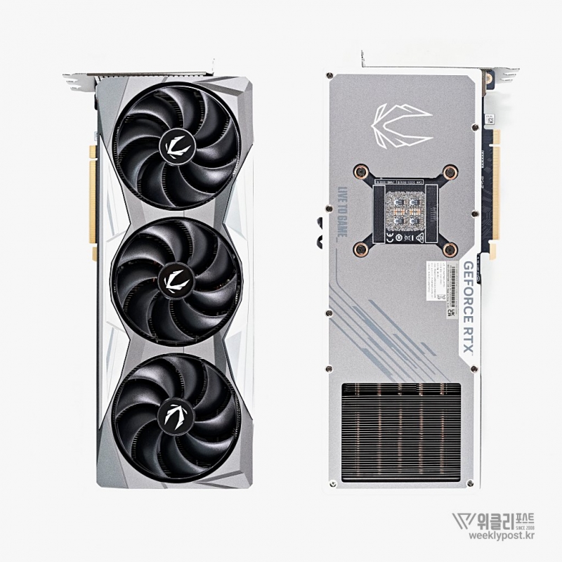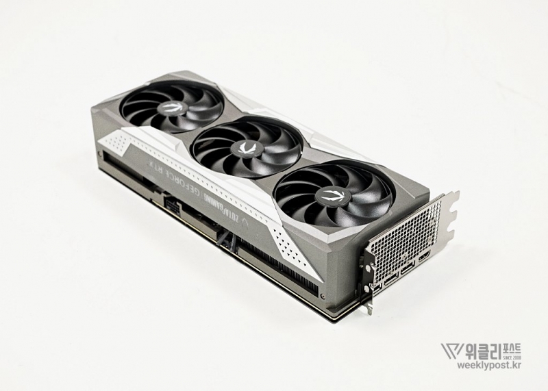 메탈 백플레이트는 심플하면서도 고급스러운 느낌을 주며, 더 두꺼워진 히트싱크의 무게를 지지해 그래픽카드의 휨을 방지하는 역할을 한다. 이러한 디자인과 기능이 조화된 조텍 RTX 4070 Ti SUPER SOLID OC D6X 16GB는 마치 몸에 꼭 맞는 슈트를 입은 듯한 견고한 이미지를 전달한다.