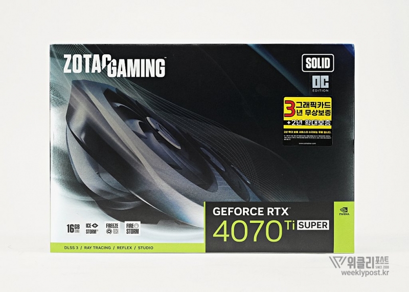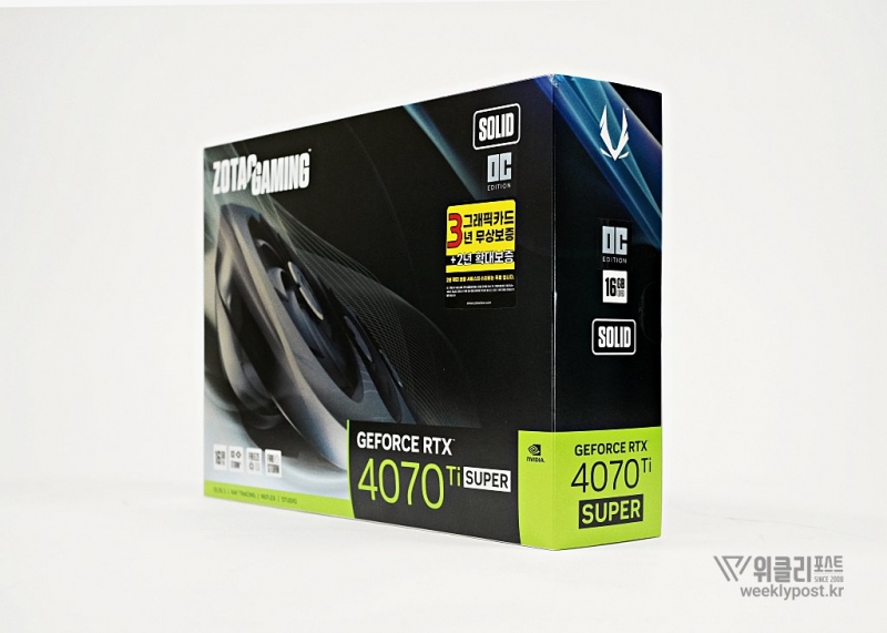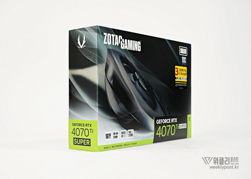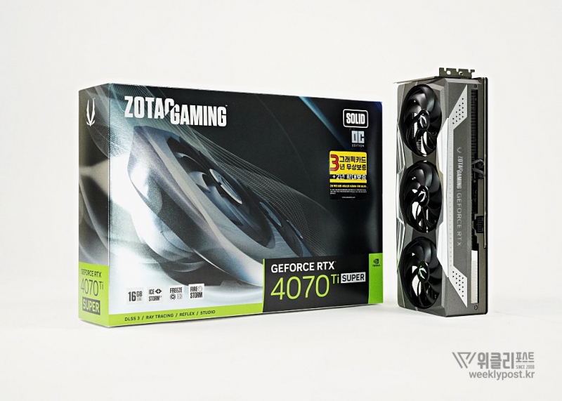 그렇다면 다른 선택의 기준이 있어야 하지 않을까? 이런 관점에서 접근하면 조텍 GAMING 지포스 RTX 4070 Ti SUPER SOLID OC D6X 16GB는 수많은 RTX 4070 Ti SUPER 중 남다른 특징이 돋보이는 제품이다. 막대한 발열도 여유롭게 해결할 것만 같은 우직한 느낌의 고성능 쿨링 솔루션, 이름만큼 묵직하고 단단한 느낌의 스타일은 화려하지만 조금은 RGB에 식상해진 소비자를 유혹하기에 충분해 보인다.