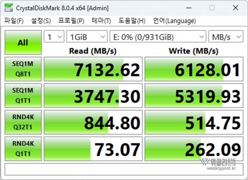 ▲ 제조사가 밝힌 읽기/쓰기 7,100/6,000 MB/s 속도 보다 빠른 성능의 제품이다. 속도만 보면 타사 고급 제품과 견주어도 손색없는 상품성을 지니고 있다.