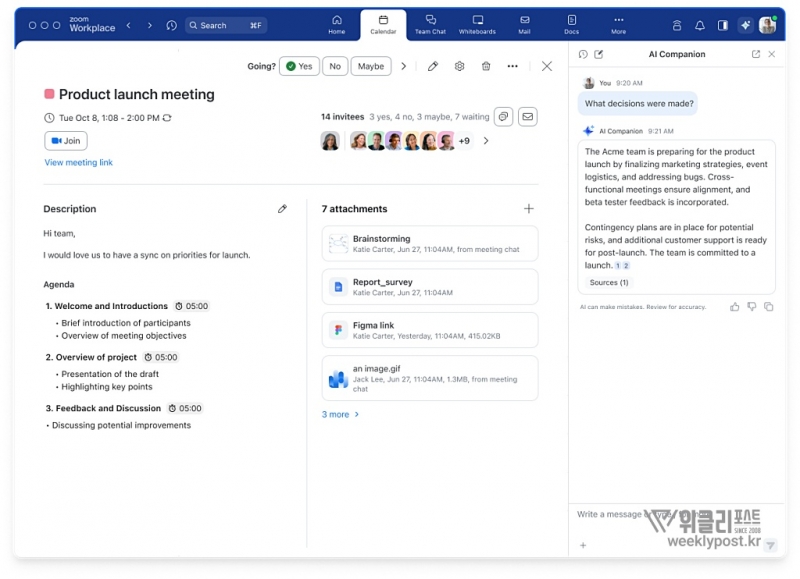고객에게 개인화된 AI 경험을 제공하기 위한 커스터마이징 애드온도 공개했다. 조직은 AI 컴패니언을 자사 데이터와 연동시켜 회의 요약, 정보 모음 등의 기능을 최적화할 수 있으며, 다양한 서드파티 앱과 연동해 더욱 종합적인 인사이트를 제공받을 수 있다.