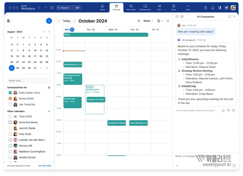 AI 컴패니언 2.0은 사용자의 업무 효율을 높이기 위해 다양한 기능을 제공한다. 지속적으로 작동하며 업무 맥락을 파악해 지능적인 제안과 답변을 제공하고, 다른 애플리케이션과 연동해 사용자에게 맞춤형 정보를 제공한다. 컴패니언은 줌 워크플레이스 전반에서 업무를 관리하고 추적해 더 많은 업무를 처리할 수 있게 하다.
