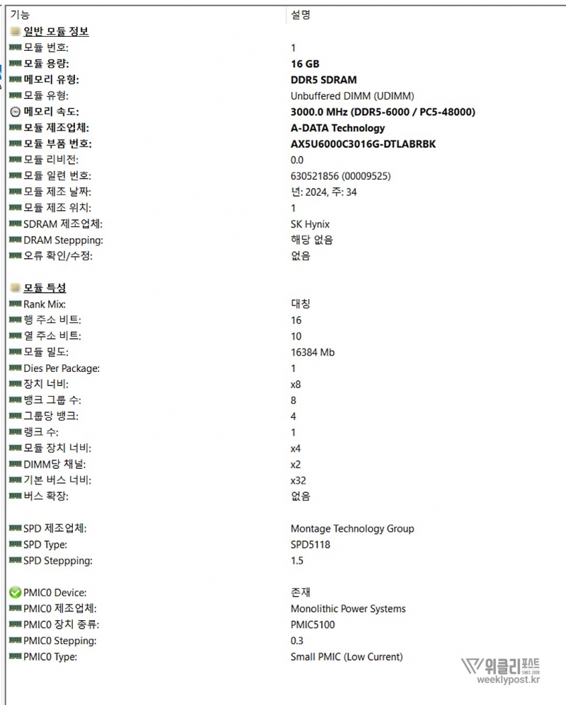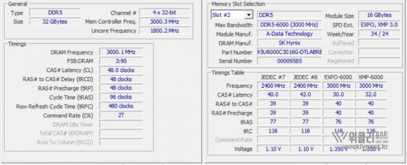 동작클럭 : 6000MHz (PC5-48000)