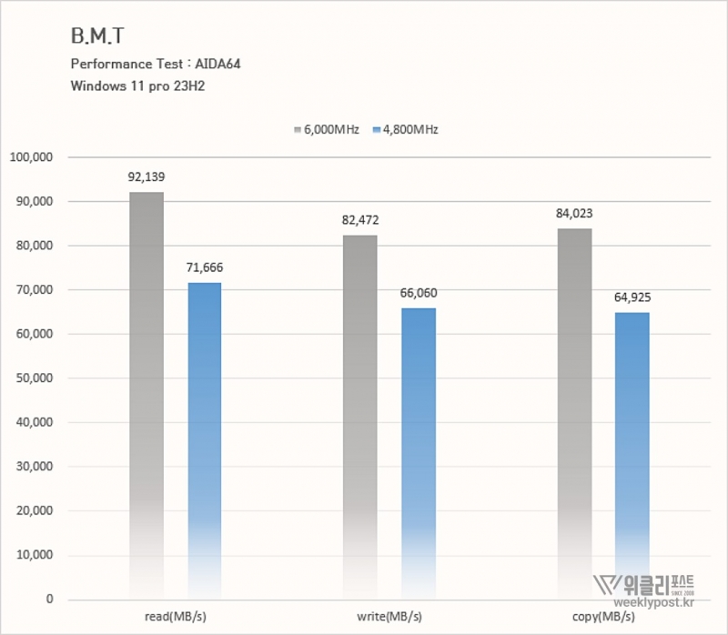 ADATA DDR5-6000 CL30 LANCER BLADE RGB 역시 XMP와 EXPO를 모두 지원한다. 플랫폼에 관계없이 메모리의 오버클럭을 지원하는 모든 메인보드에서 쉽고 빠르게 설정을 마무리할 수 있는 것은 물론, 만족스러운 수준의 대역폭을 확보해 준다. 역시 오버클럭이 곁들여진 메모리답게 성능 향상의 폭도 제법 큰데, 작업 시 대량에 메모리가 소요되는 그래픽이나 설계, 영상의 편집 등에 활용하기에 적당하다.