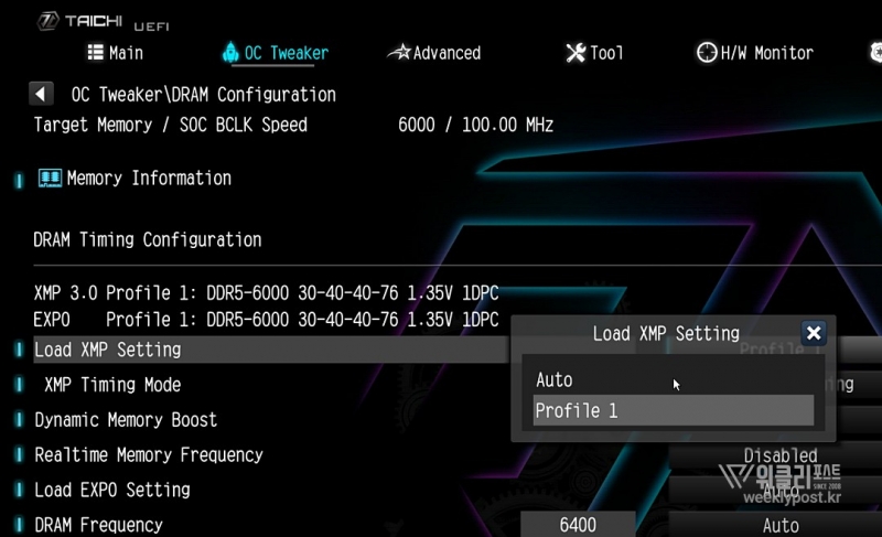 오버클럭 옵션 : 인텔 XMP 3.0(O.C), AMD EXPO