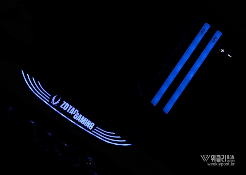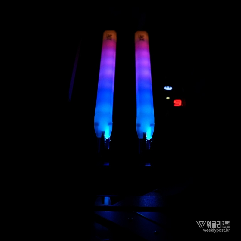알루미늄 재질 히트싱크는 사선으로 캐릭터 라인을 넣어 보다 강렬한 이미지를 연출했다. 상단 RGB 부분은 화려하고 정갈하게 빛이 확산될 수 있도록 투명한 형태의 라이트바를 넣었다. 모서리를 살짝 절삭 가공한 덕분에 RGB가 빛을 발하기 시작하면 심플하고 고급스러운 외형과 달리 정돈돼 있지만, 꽤나 화려한 RGB를 즐길 수 있다.
