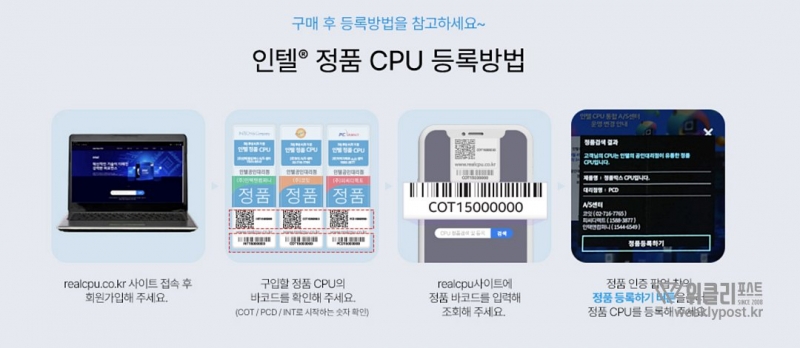 현재 인텔 국내 공인대리점 3사에서는 보다 나은 서비스와 인텔공인대리점의 정품 BOX CPU를 구매한 사용자에게 차별화된 서비스를 제공하기 위한 캠페인을 하고 있다. realcpu.co.kr 에 정품 등록을 하면 각종 이벤트 참여 및 Self-PC Care service(원격지원서비스)를 제공한다. 현명한 사용자라면 이런 사항들을 숙지해서 쾌적하고 편리한 PC부품 구매를 진행하길 바란다.