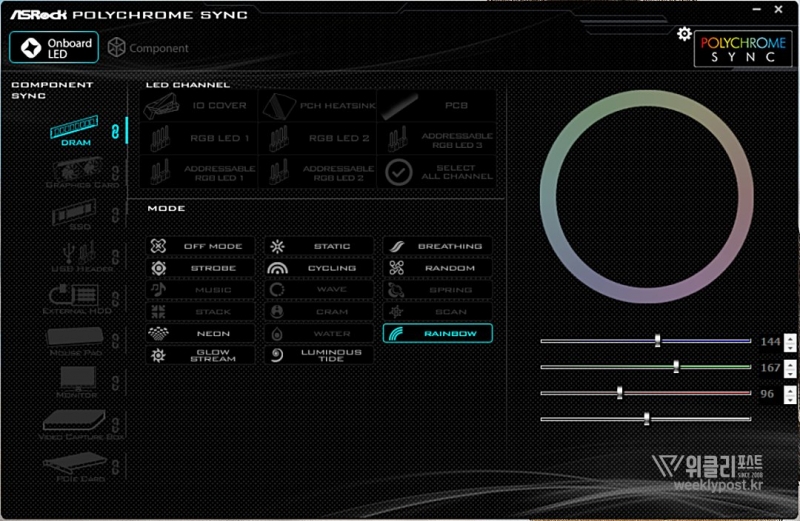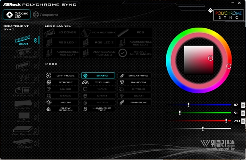 ▲ ASRock 메인보드가 제공하는 ARGB 세팅 소프트웨어
