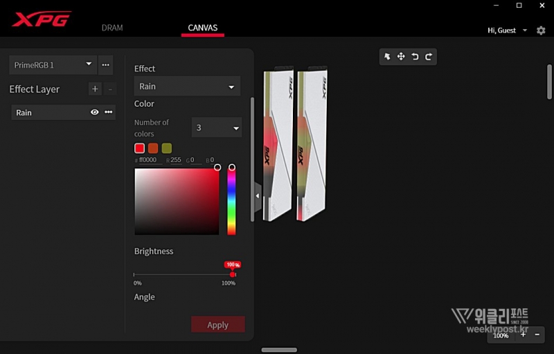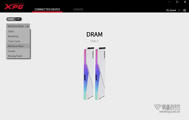 ADATA의 XPG 제품군 또한 RGB 조명을 제어할 수 있는 전용 소프트웨어 XPG PRIME을 제공한다. 직관적인 인터페이스를 통해 RGB 조명 효과를 손쉽게 변경할 수 있으며, XPG의 모든 호환 디바이스를 동기화해 화려한 RGB 환경을 구현할 수 있다. 특히 DRAM RGB 조명 효과는 간단히 설정할 수 있어 편리하다.