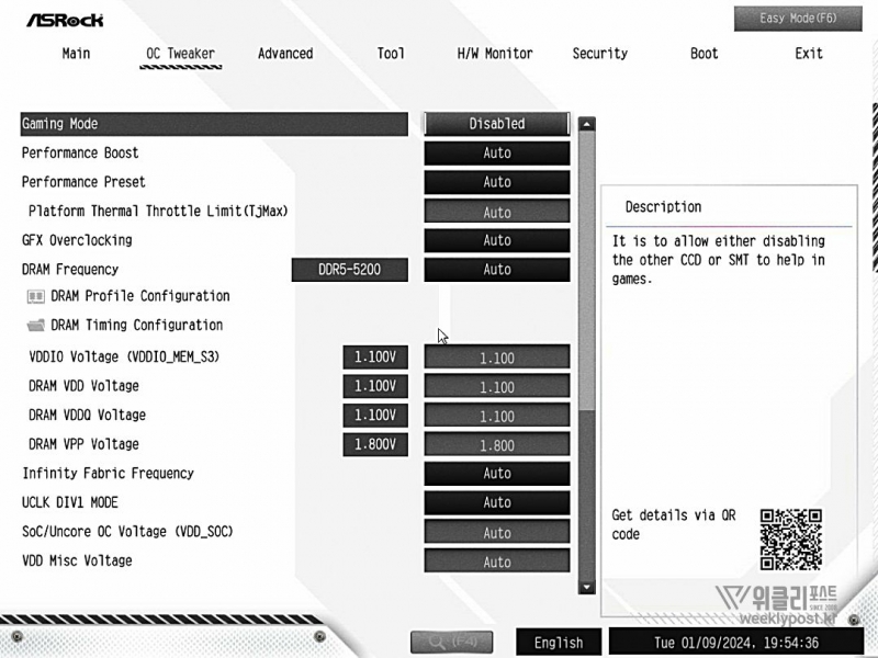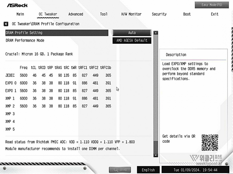 DDR5 메모리 슬롯은 총 4개로, 최대 256GB의 용량을 지원한다. 기본 JEDEC 표준인 4800MHz는 물론, 오버클럭 환경에서는 최대 8000MHz까지 지원하며, AMD EXPO와 XMP 프로파일을 통해 손쉽게 안정적인 오버클럭 성능을 구현할 수 있다.