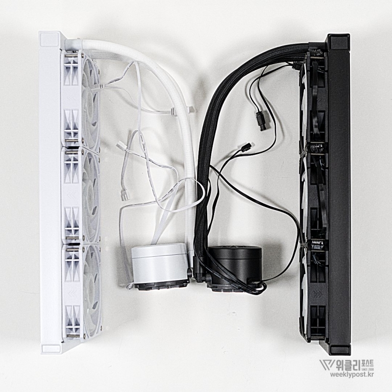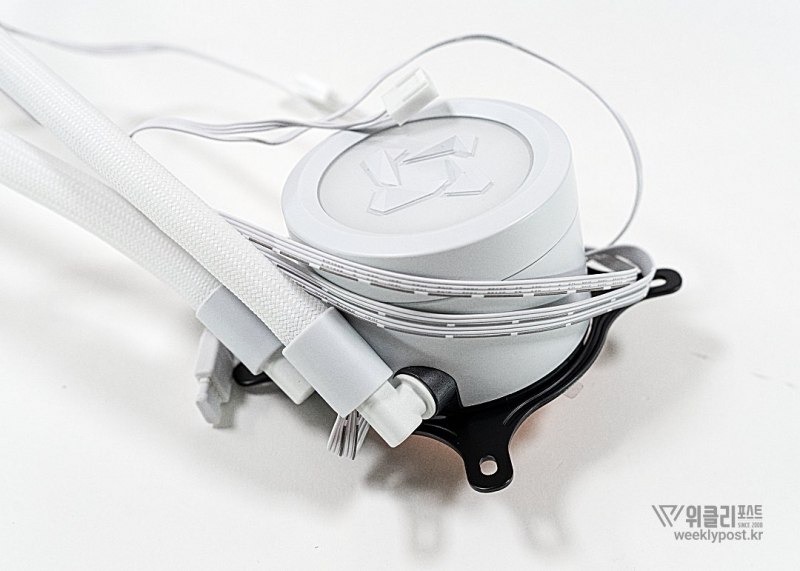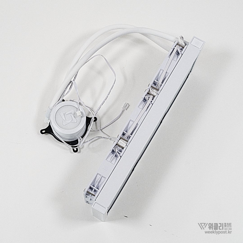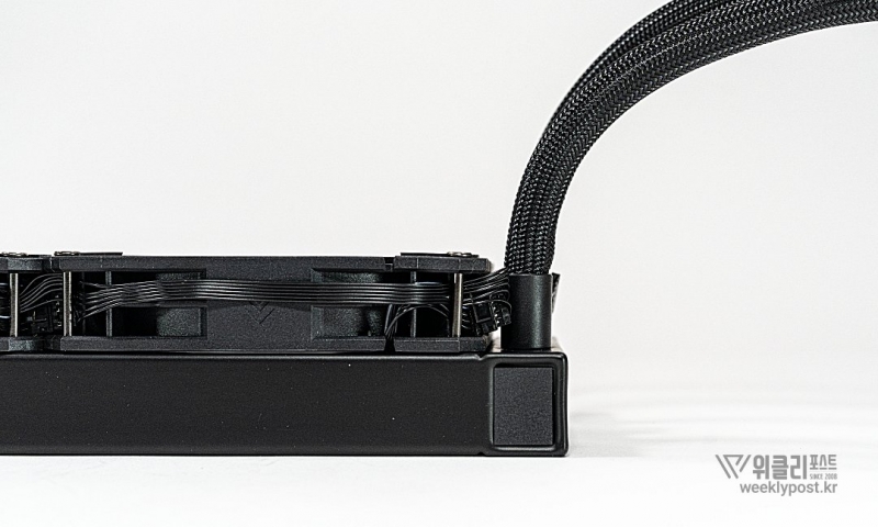 펌프의 RGB 케이블을 튜브 내부에 삽입하는 설계를 적용해 물 순환과 전기 신호 전송을 하나의 튜브로 해결했다. 이 덕분에 조립 시 케이블 정리가 간편해지고, 별도의 전선 연결이 필요하지 않아 설치 과정도 더욱 쉬워졌다. 또한 워터블록과 라디에이터를 연결하는 튜브에는 솔리드 튜브 락을 적용해, 외부 충격으로 인한 튜브 분리를 방지하고 누수 가능성을 최소화했다. 이를 통해 장기적인 내구성과 안정성을 높였다.