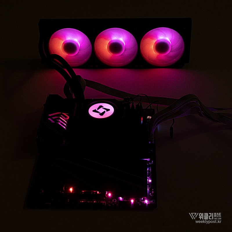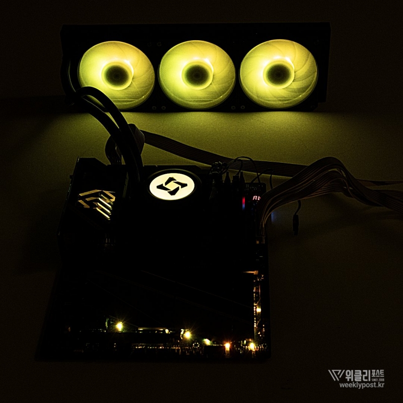 2. 기능과 만듦새 : 어드레서블 RGB LED 싱크 지원, 구리베이스 워터블록, 360mm 라디에이터