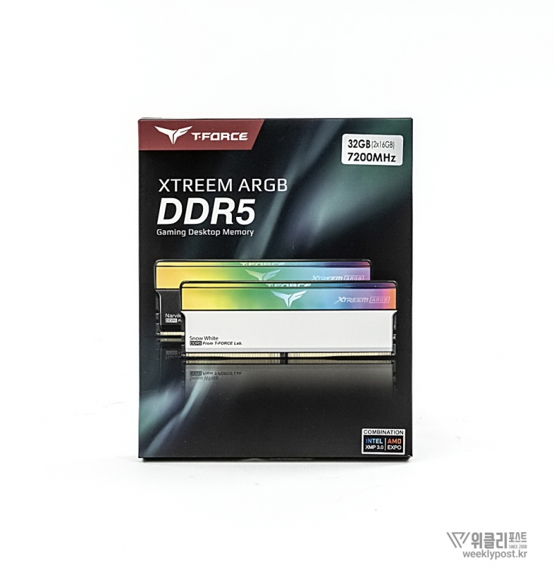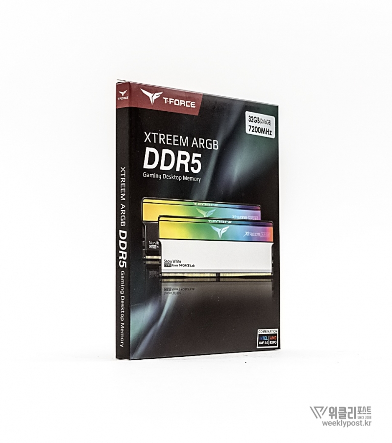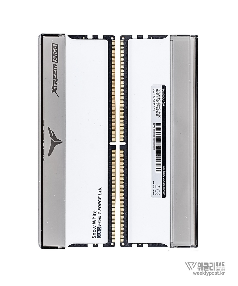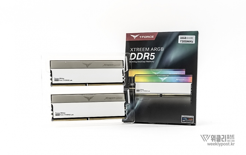 공식 제품명은 TeamGroup T-Force DDR5-7200 CL34 XTREEM ARGB White Package 서린 32GB (16GBx2)이며, 이하 T-Force XTREEM Snow White로 부르겠다. 7,200MHz의 빠른 속도를 갖춘 플래그십 게이밍 메모리로, 고성능을 위한 세부 사양도 인상적이다.