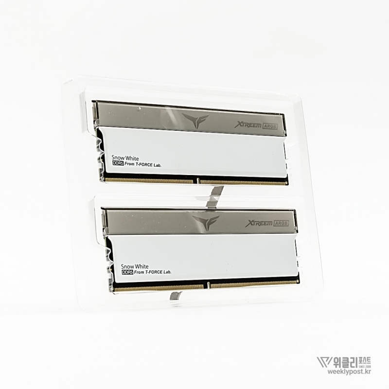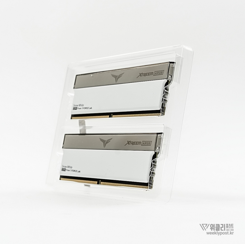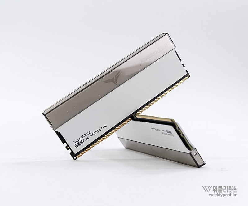 백설 이야기를 꺼낸 이유는 지금 소개할 제품이 바로 그런 특징을 지닌 제품이기 때문이다. 팀그룹이 그러한 자신감을 담아 선보인 플래그십 고성능 메모리를 소개한다. 첫인상부터 강렬한 존재감을 자랑하는 이 제품은 TeamGroup T-Force XTREEM ARGB 시리즈의 스노우 화이트 모델이다.