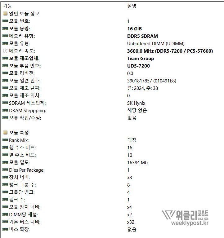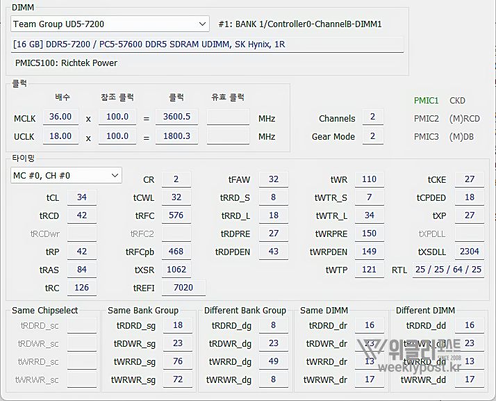 동작클럭: 7200MT/s
