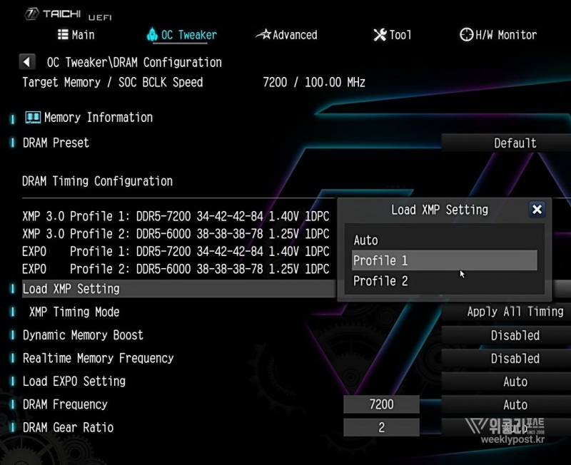 오버클럭 방법은 굉장히 쉽다. 바이오스에서 XMP(인텔)이나 AMD EXPO(라이젠) 프로필을 활성화하면 된다. 그러면 별다른 시행착오 없이 바로 고클럭인 상태로 사용할 수 있다. 동작 클럭도 7,200MHz이니 상당히 높은 편이고, 램타이밍도 CL34-42-42-84로 쓸만하다.