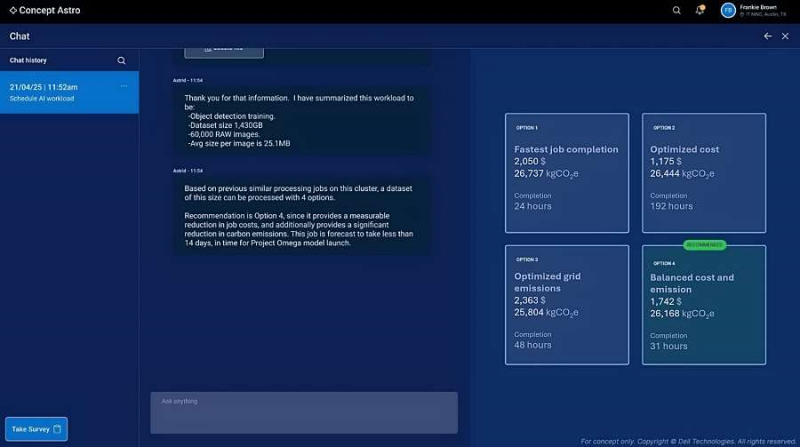 현재 델 테크놀로지스는 컨셉 아스트로의 실제 구현을 위한 검증 작업을 진행 중이다. 캘리포니아 대학교 샌디에이고 캠퍼스의 스크립스 해양학 연구소와 협력해 산호초 이미지를 고해상도 3D 모델로 변환하는 워크로드를 대상으로 시범 운영을 실시했다. 컨셉 아스트로는 워크로드 실행 시간과 위치를 자동 조정해 전력망 부하를 줄이고, 연구 연속성을 유지하는 동시에 비용 20% 절감, 탄소 배출량 32% 감소를 유도했다.