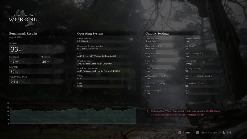 | Black Myth Wukong | Low + FSR | 33 FPS |