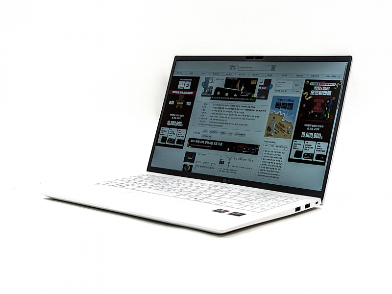 디자인은 그램 특유의 단정함을 유지했다. 상판은 불필요한 장식 없이 매트한 질감의 화이트 톤으로 마감돼 있고, 중앙에 ‘gram’ 로고가 존재감을 과시했다. 각진 부분 없이 매끈하게 이어진 모서리가 시각적인 무게감을 확 낮추는 느낌이다. 15.6인치 화면을 가진 모델임에도 두께가 얇아 가방에 넣었을 때 부피를 크게 차지하지 않는 것도 그램 노트북의 강점이다. 손에 들었을 때의 느껴지는 표면의 촉감도 제법 고급스럽다. 전만적으로 튀지 않지만 오래 봐도 질리지 않는 외관은 비즈니스 환경은 물론, 강의실이나 카페에서도 자연스럽게 어울린다. 노트북 시장에서 애플 맥북과 대적 가능한 상대가 LG 그램이라는 부분은 괜한 말이 아니다.