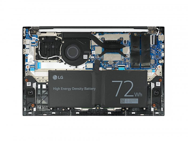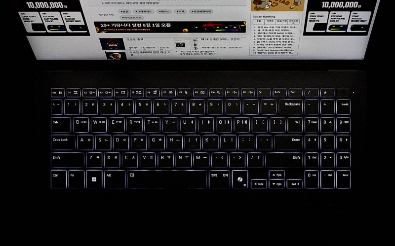 발열 제어도 신경 쓴 부분이다. 저부하 작업에서는 팬이 거의 돌지 않아 조용하고, 고부하 작업에서도 열이 한쪽에만 모여 키보드와 팜레스트가 뜨겁지 않다. 통풍구는 하단과 힌지 쪽에 배치돼 있어 내부의 열이 자연스럽게 빠져나가며, 바닥면 밀폐감을 줄여 열 순환 흐름을 원활하게 만든다. 실제 내부 온도는 부하 시 다소 높게 측정되지만, 손으로 느껴지는 표면 온도는 훨씬 낮았다. 이는 키보드 위로 열이 전달되지 않도록 하는 차폐 설계가 잘 적용된 결과다.