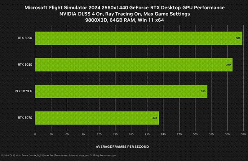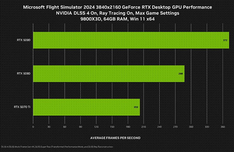 마이크로소프트 플라이트 시뮬레이터 2024: 심 업데이트 3을 통해 DLSS 4 지원 추가. RTX 50 시리즈에서 최대 4.2배 성능 향상, 최대 370 FPS 달성 가능.