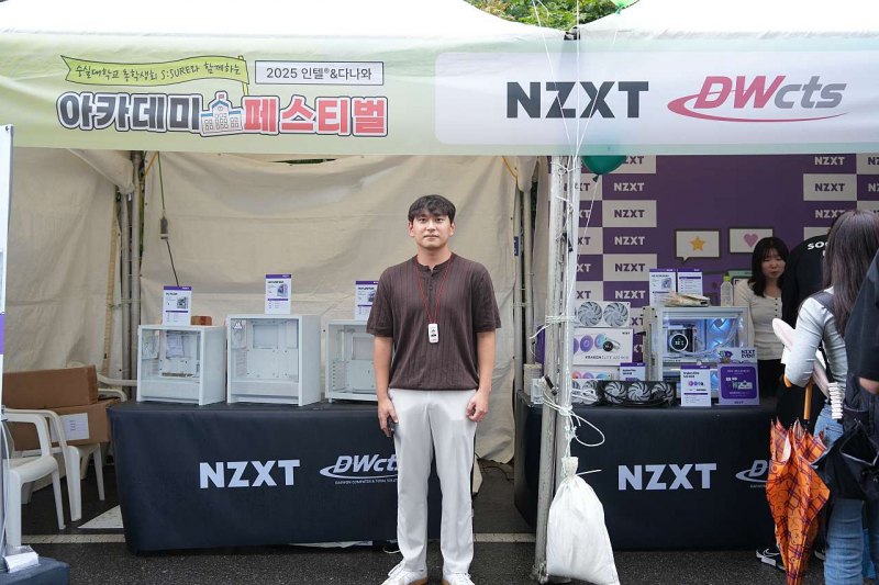 숭실대학교 중앙광장에서 열린 다나와 아카데미 페스티벌 현장에는 글로벌 PC 하드웨어 브랜드도 함께했다. 특히 대원CTS는 처음으로 NZXT 브랜드를 소개했다. 현장에서 만난 김태훈 대리는 “대원CTS에서 NZXT 영업과 마케팅을 맡고 있다”며 “학생들에게 NZXT를 직접 보여주고 싶었다”고 참여 이유를 말했다.