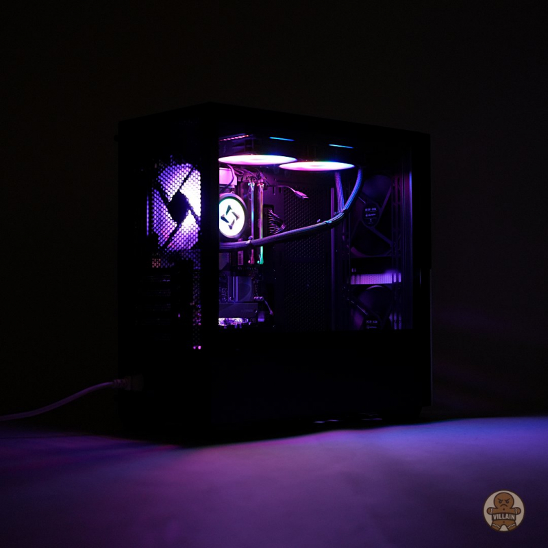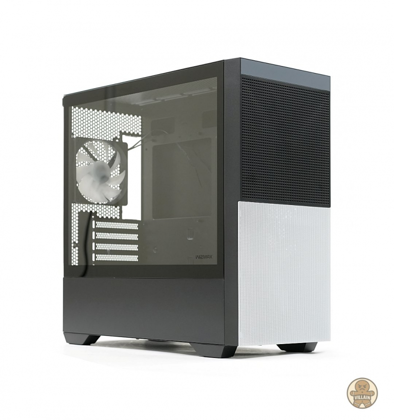 작은 시스템이 단단해 보이려면 필요 없는 디테일은 줄이고, 대신 시선을 끌어당기는 핵심 라인 하나를 정확히 잡아주는 것이 효과적이다. WIZMAX 모노크롬은 전면의 대조적 컬러 구성뿐 아니라 측면 역시 강화유리 패널과 하단 파워 챔버로 명확히 나뉘어 있어, 제품 전체를 하나의 디자인 흐름으로 자연스럽게 연결한다. 단순한 구조적 분할이 아니라, 전면 디자인의 연장선으로 작동하기 때문에 시각적 완성도가 높다.