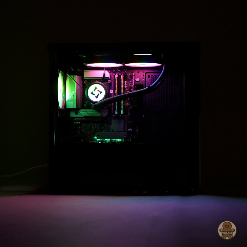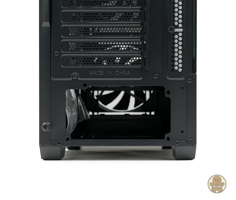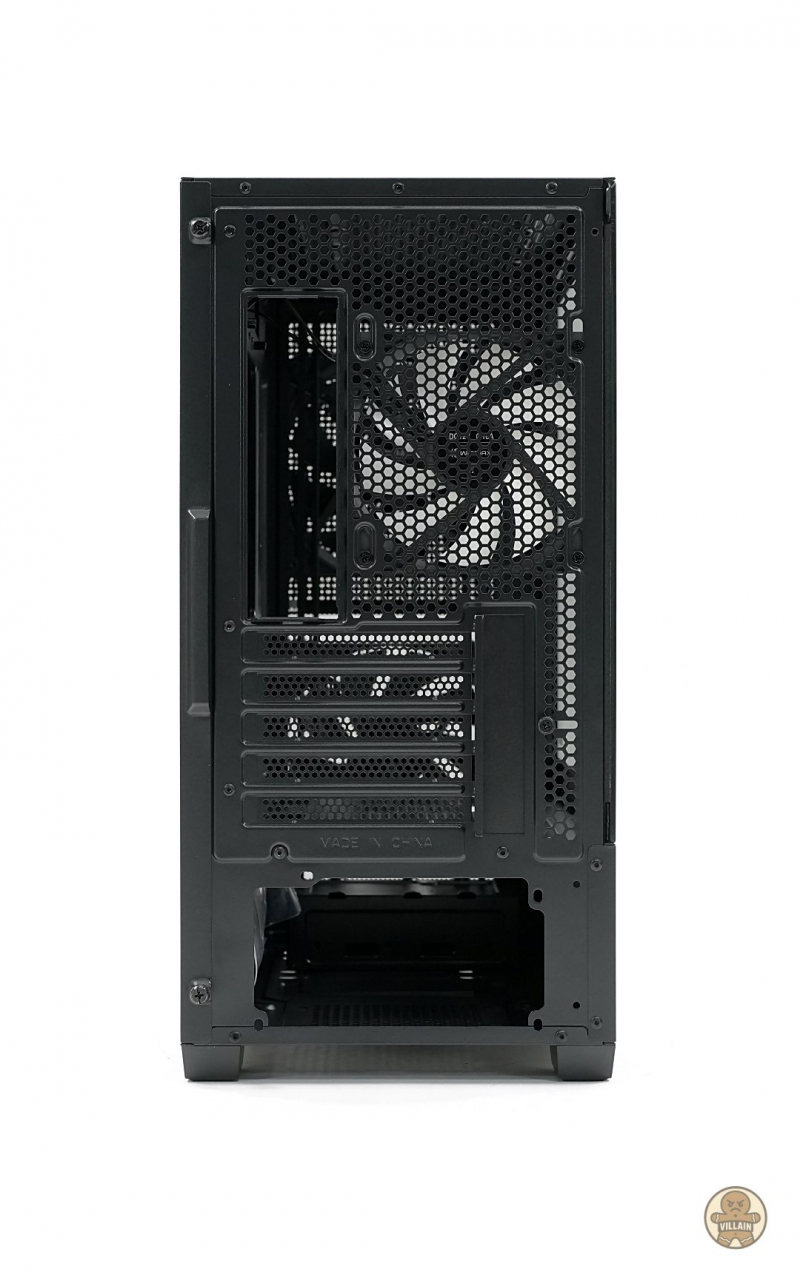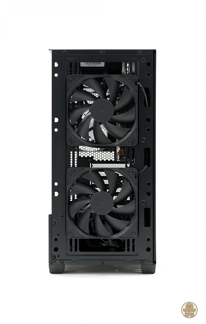 후면에는 120mm ARGB 팬이 기본 제공되어 20.77dBa의 낮은 소음과 31.2CFM의 배기 성능을 확보한다. 필요에 따라 내부 측면과 파워 챔버 상단에 120mm 팬 두 개를 추가로 장착할 수도 있다. 공랭 CPU 쿨러를 사용할 경우 상단에 120mm 팬 세 개 또는 140mm 팬 두 개 장착이 가능해, 쿨링 환경은 ATX 대비 부족함이 없다.